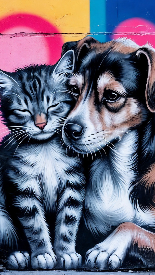 Edytor tapety: Pies z kotem na muralu