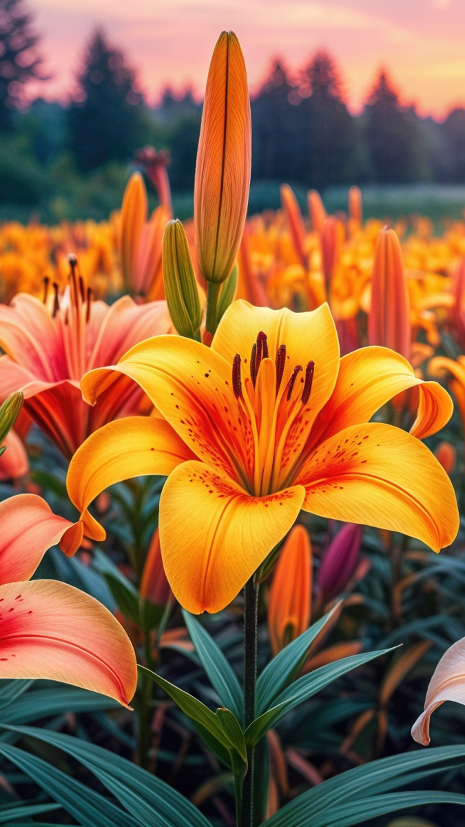 Edytor tapety: Kolorowe lilie na polu