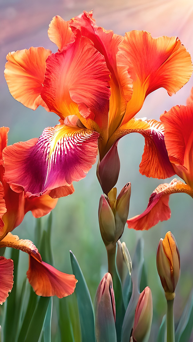 Edytor tapety: Czerwone irysy z pąkami
