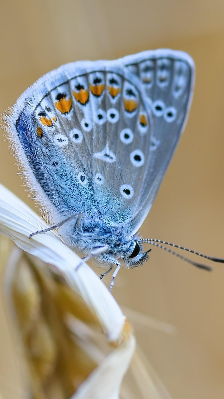 Edytor tapety: Niebieski modraszek ikar na suchej roślinie