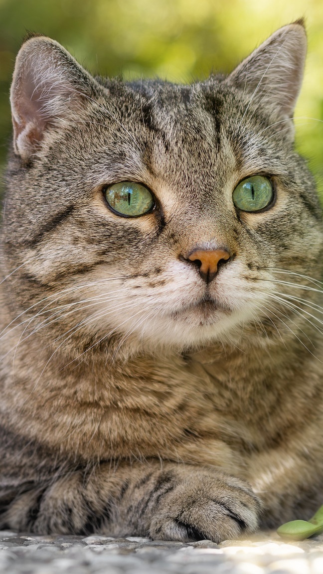 Edytor tapety: Spojrzenie leżącego burego kota
