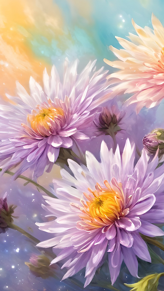 Edytor tapety: Liliowe astry na kolorowym tle