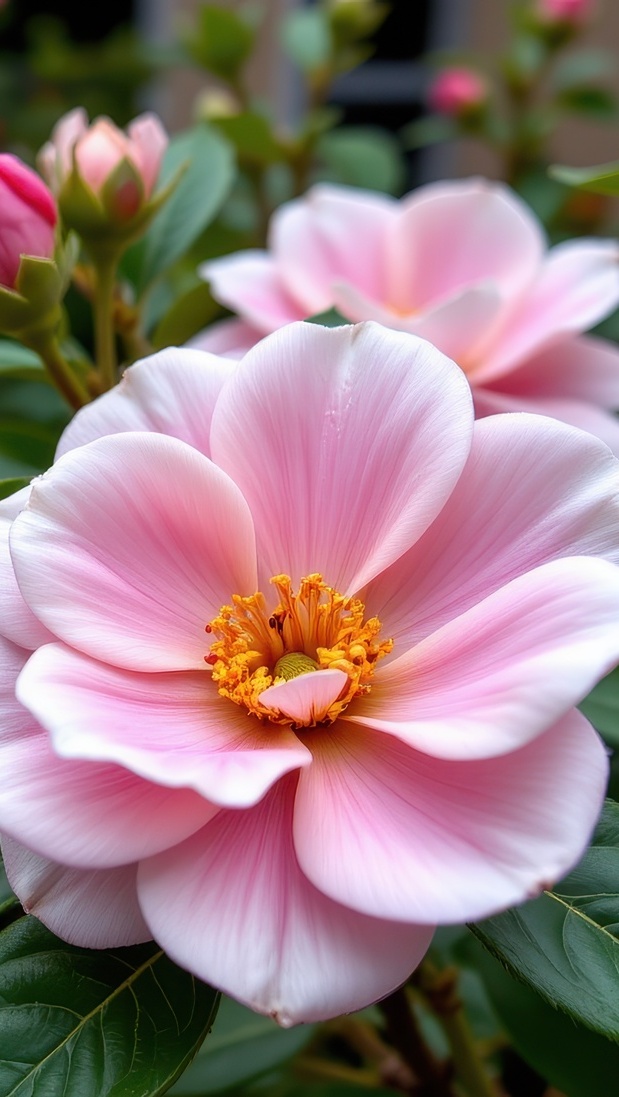 Edytor tapety: Rozkwitnięte jasnoróżowe kwiaty kamelii