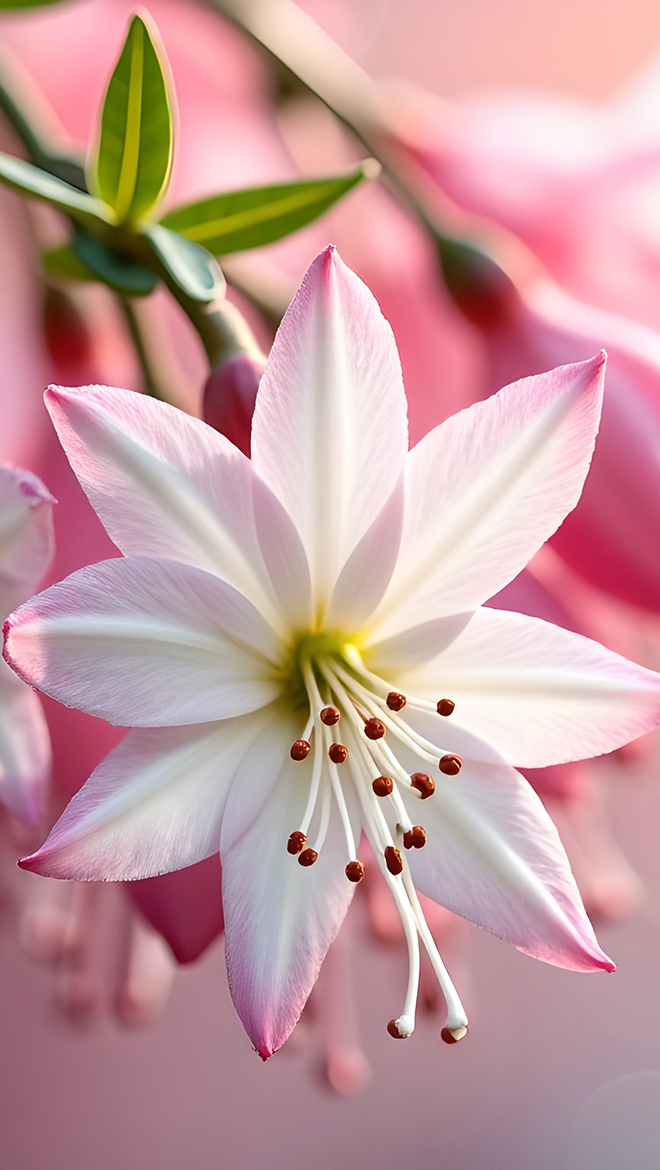 Edytor tapety: Biało-różowy kwiat w zbliżeniu