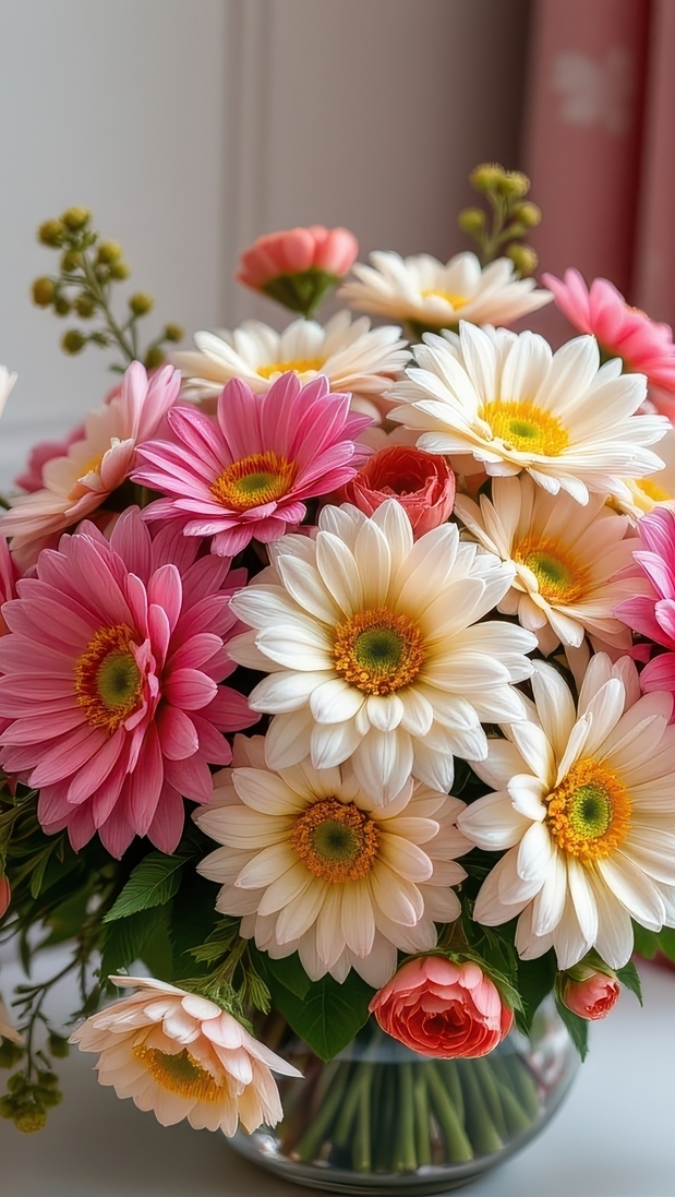 Edytor tapety: Bukiet kolorowych gerber w szklanym wazonie