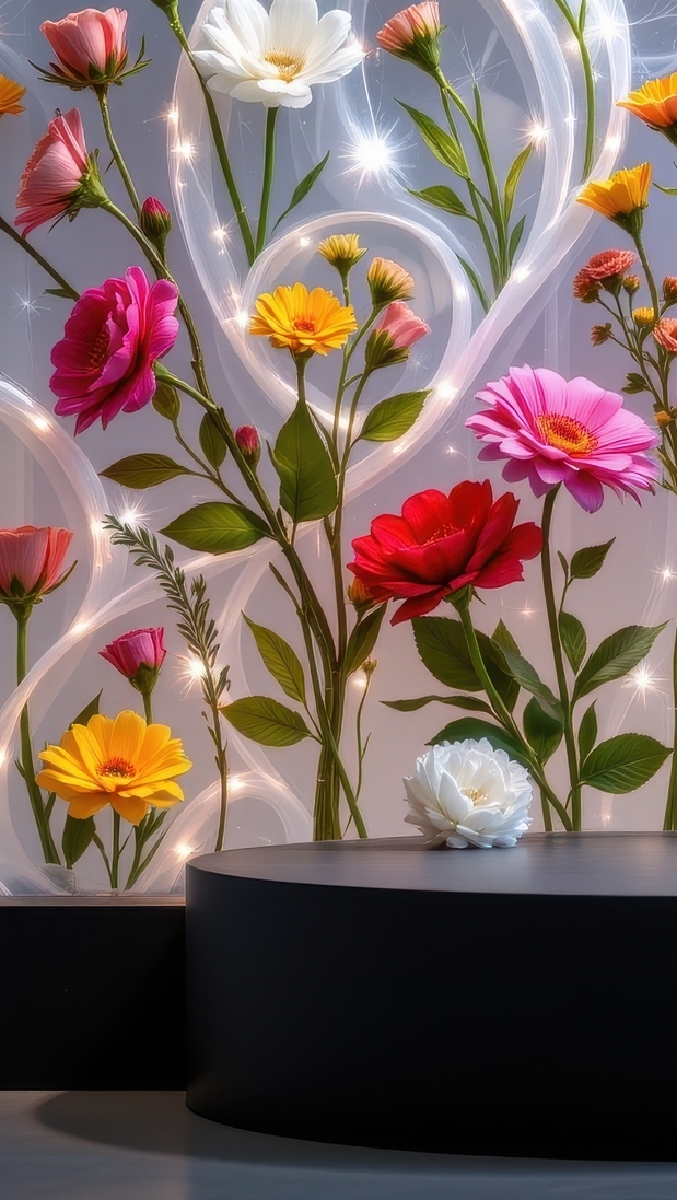 Edytor tapety: Kolorowe kwiaty wśród świateł obok podium