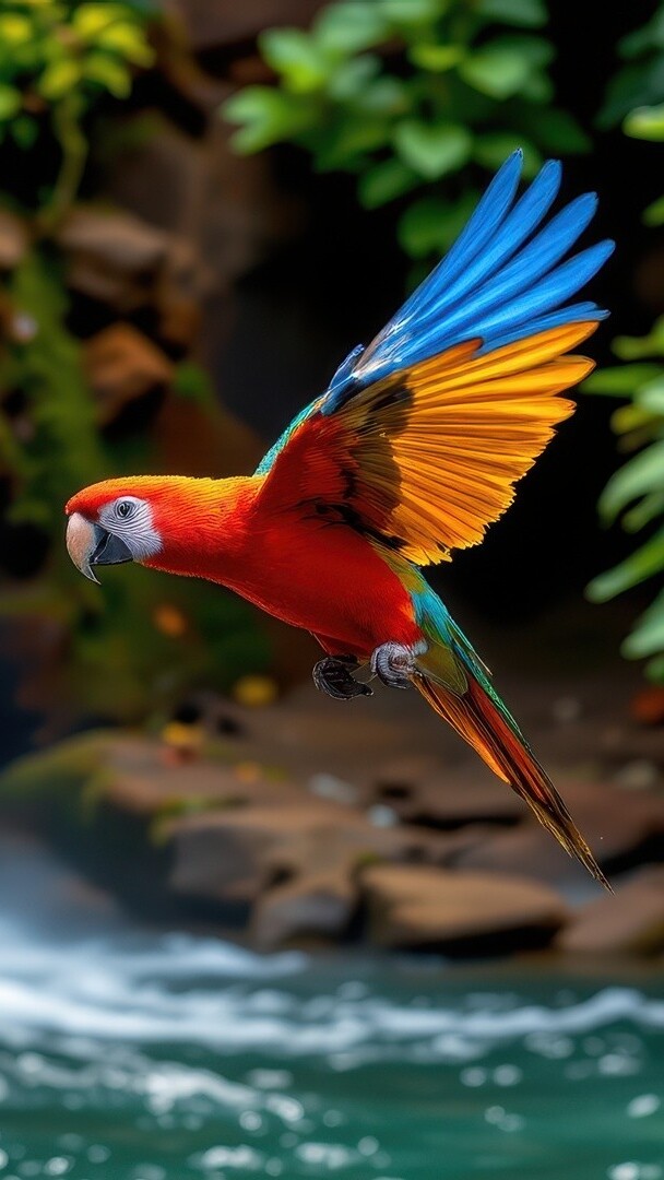Edytor tapety: Ara w locie nad wodą
