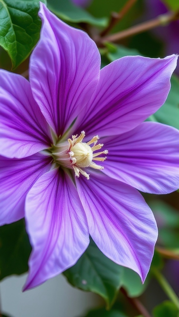 Edytor tapety: Rozkwitnięty fioletowy powojnik w zbliżeniu