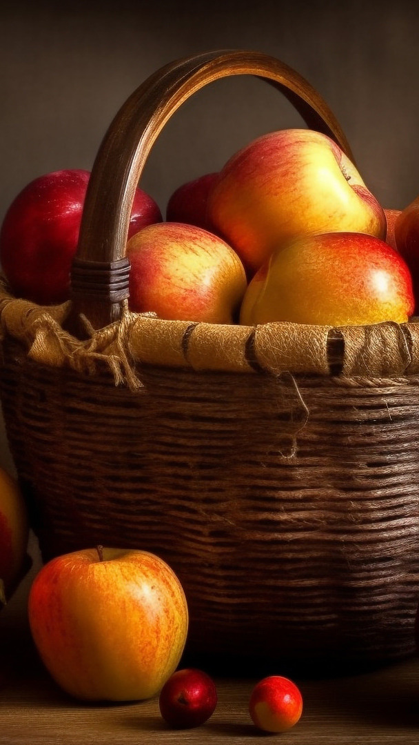 Edytor tapety: Jabłka w wiklinowym koszyku