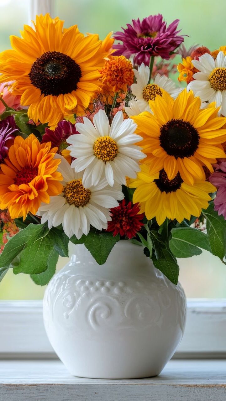 Edytor tapety: Kolorowe kwiaty w białym wazonie