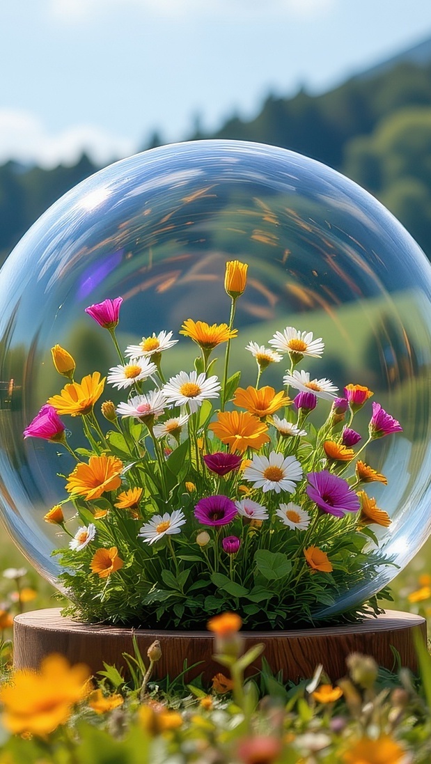 Edytor tapety: Polne kwiaty w szklanej kuli