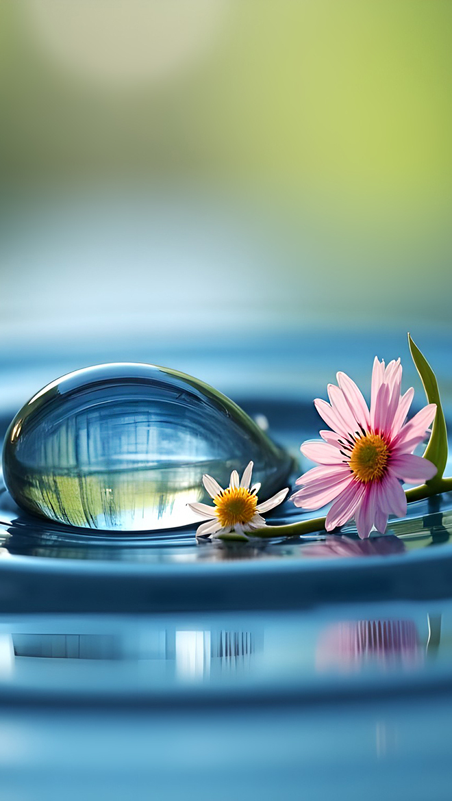 Edytor tapety: Dwa kwiaty obok kropli na wodzie