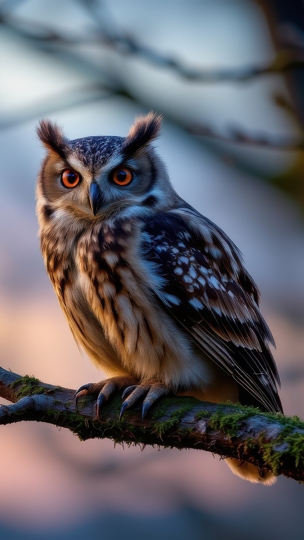 Edytor tapety: Sowa na omszałej gałązce