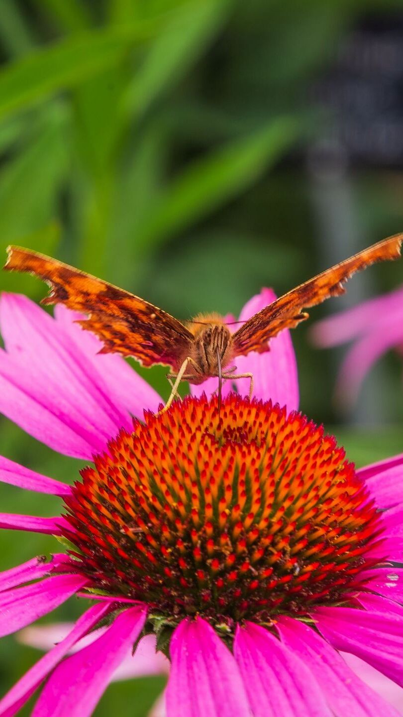 Edytor tapety: Motyl na różowej jeżówce w zbliżeniu