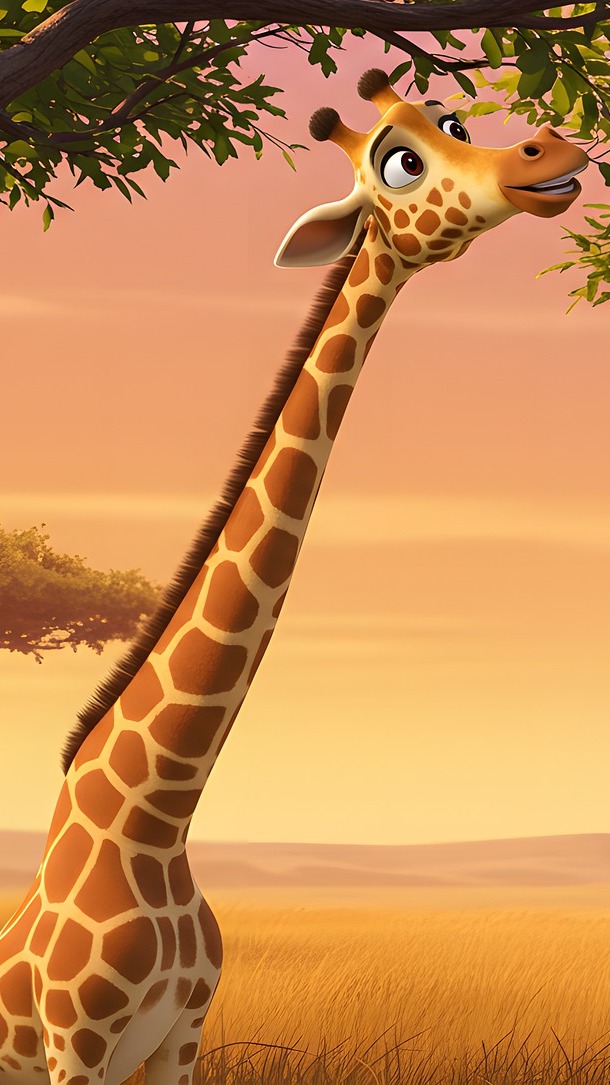 Edytor tapety: Żyrafa jedząca liście z drzewa