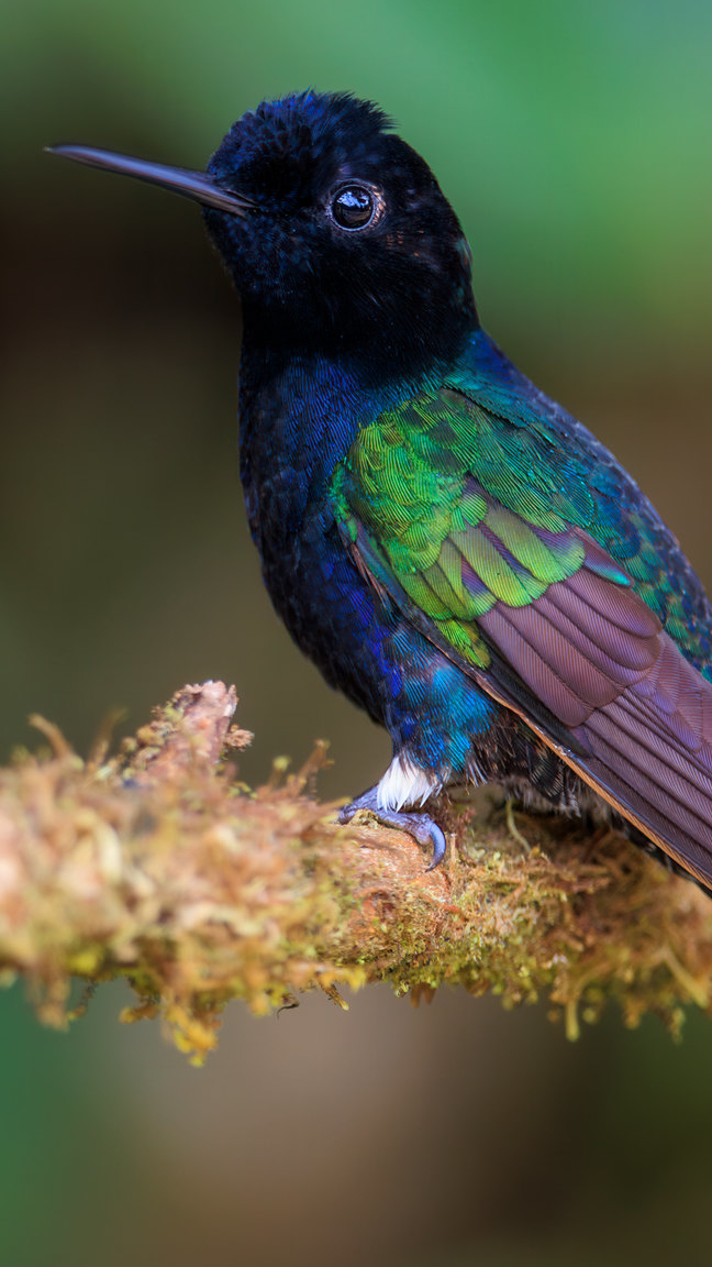 Edytor tapety: Amorek szafirowy na omszałej gałązce