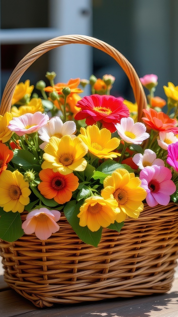 Edytor tapety: Rozświetlone kolorowe kwiaty w koszyku