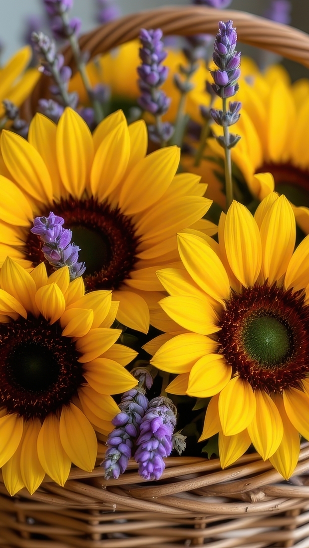 Edytor tapety: Koszyk z lawendą i słonecznikami