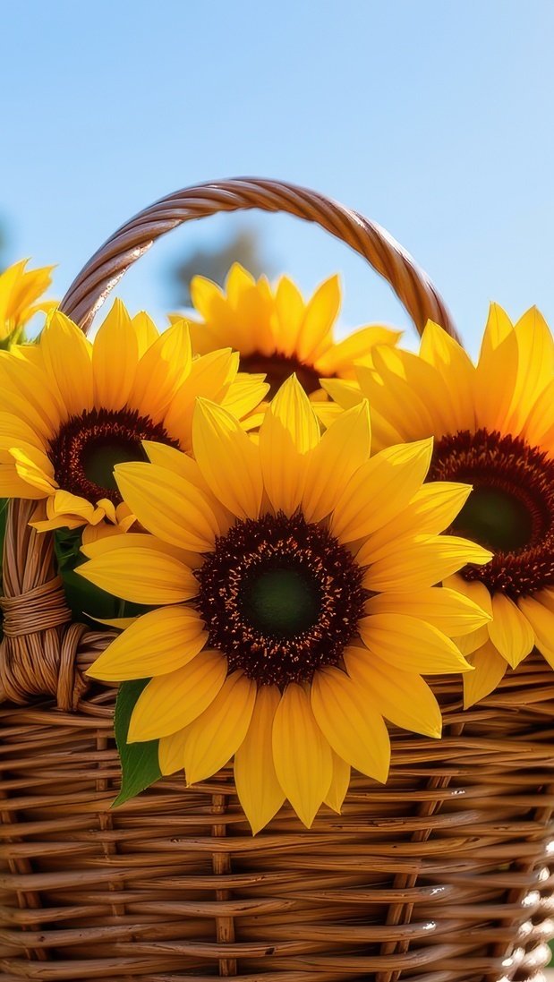 Edytor tapety: Wiklinowy koszyk ze słonecznikami