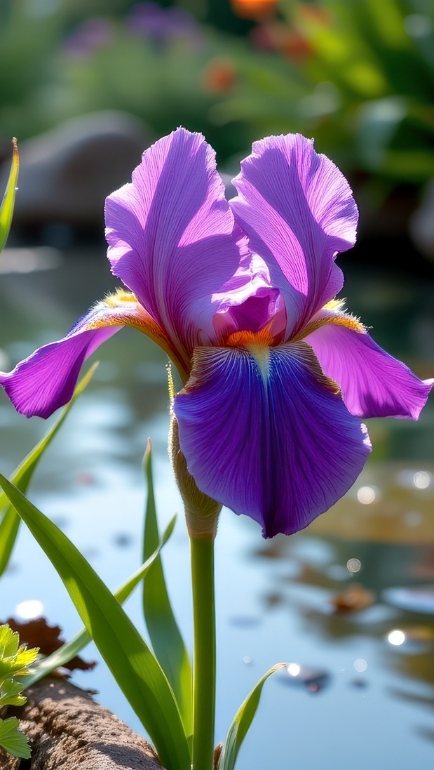 Edytor tapety: Rozświetlony fioletowy irys nad wodą