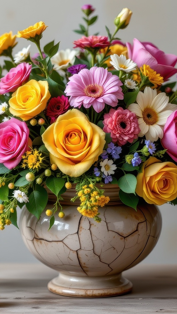 Edytor tapety: Kolorowe kwiaty w ceramicznym wazonie