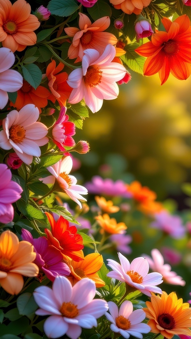 Edytor tapety: Rozświetlone światłem kolorowe kwiaty