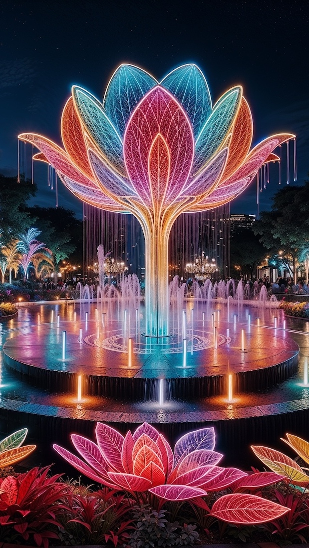 Edytor tapety: Fontanna podświetlona kolorowymi światłami