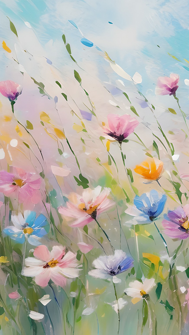Edytor tapety: Drobne kolorowe kwiaty w grafice