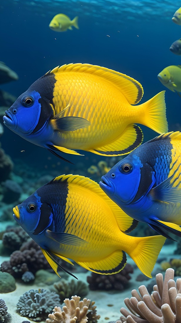 Edytor tapety: Żółto-niebieskie ryby w wodzie