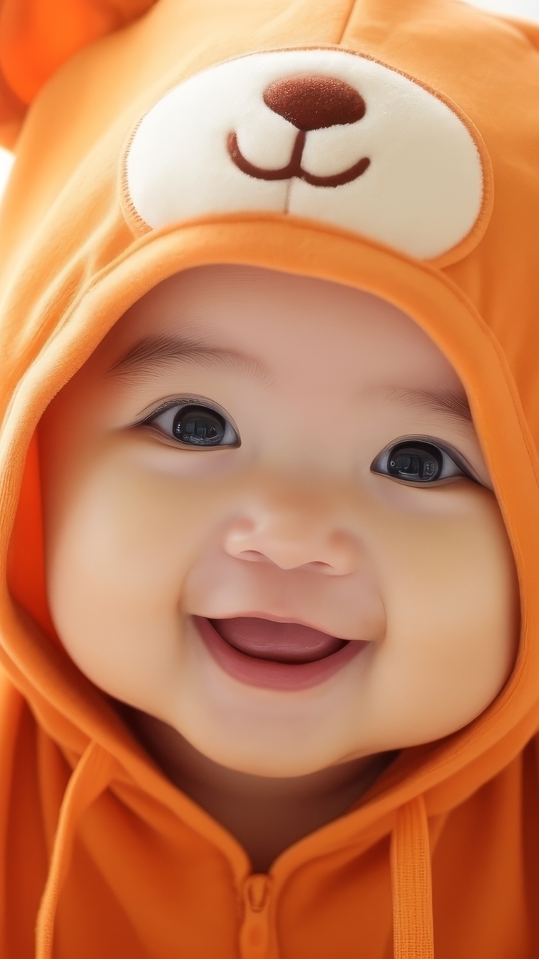 Edytor tapety: Uśmiechnięte dziecko w pomarańczowym ubraniu