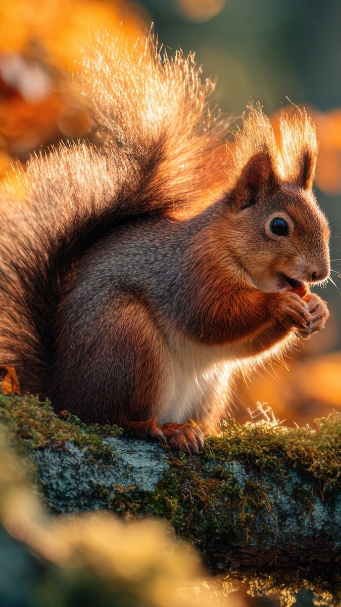 Edytor tapety: Wiewiórka na omszałej gałęzi