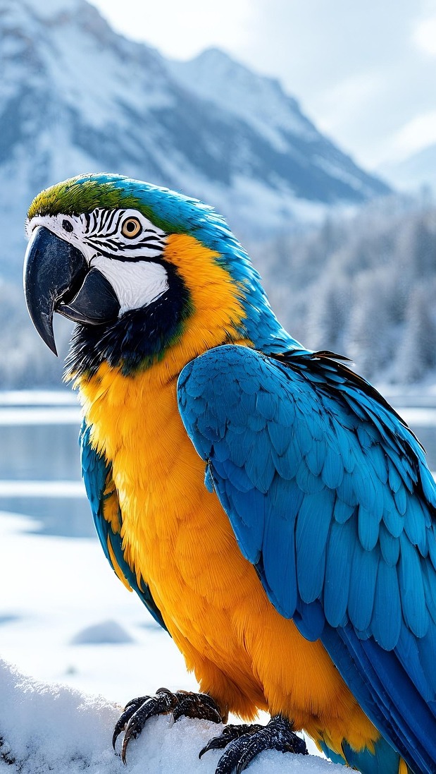 Edytor tapety: Ara na ośnieżonym konarze