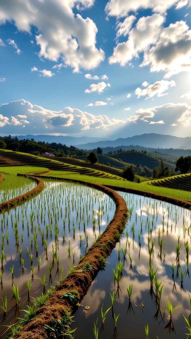 Edytor tapety: Tarasy ryżowe na wzgórzach