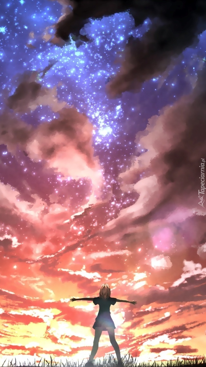 Edytor tapety: Dziewczyna pod kolorowym niebem