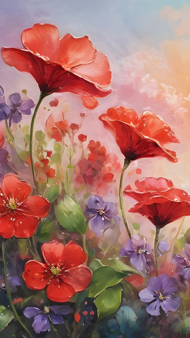 Edytor tapety: Czerwone kwiaty w grafice