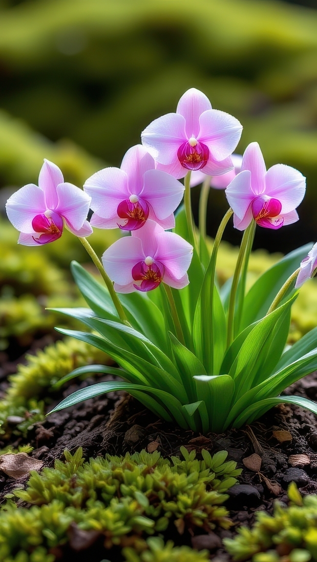 Edytor tapety: Jasnoróżowe storczyki rosnące w mchu