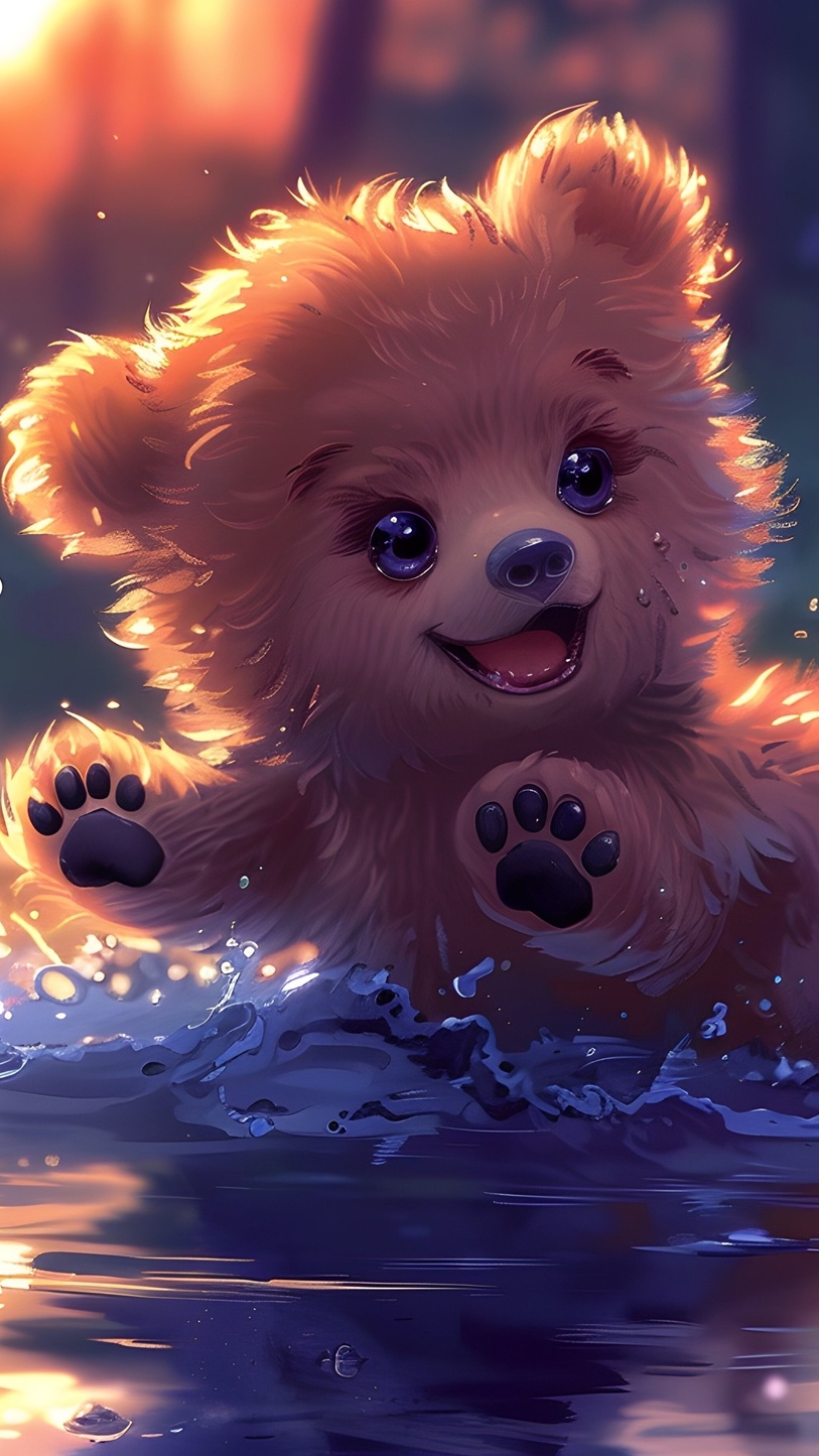 Edytor tapety: Zabawa niedźwiadka w wodzie