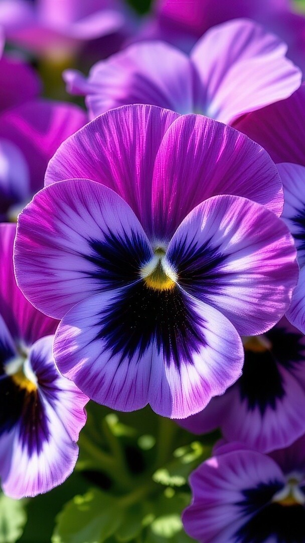 Edytor tapety: Rozkwitnięty purpurowy bratek w zbliżeniu