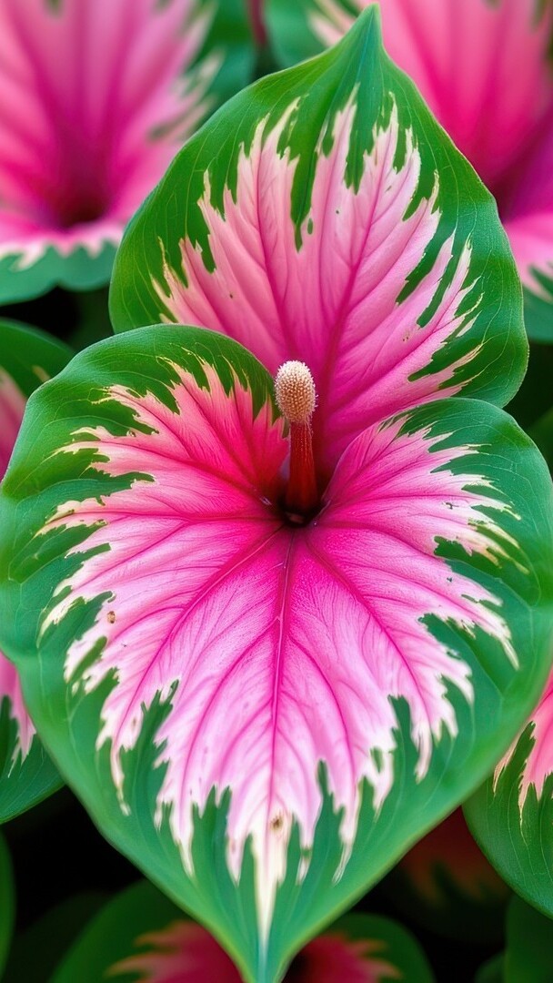 Edytor tapety: Zielono-różowe listki kaladium