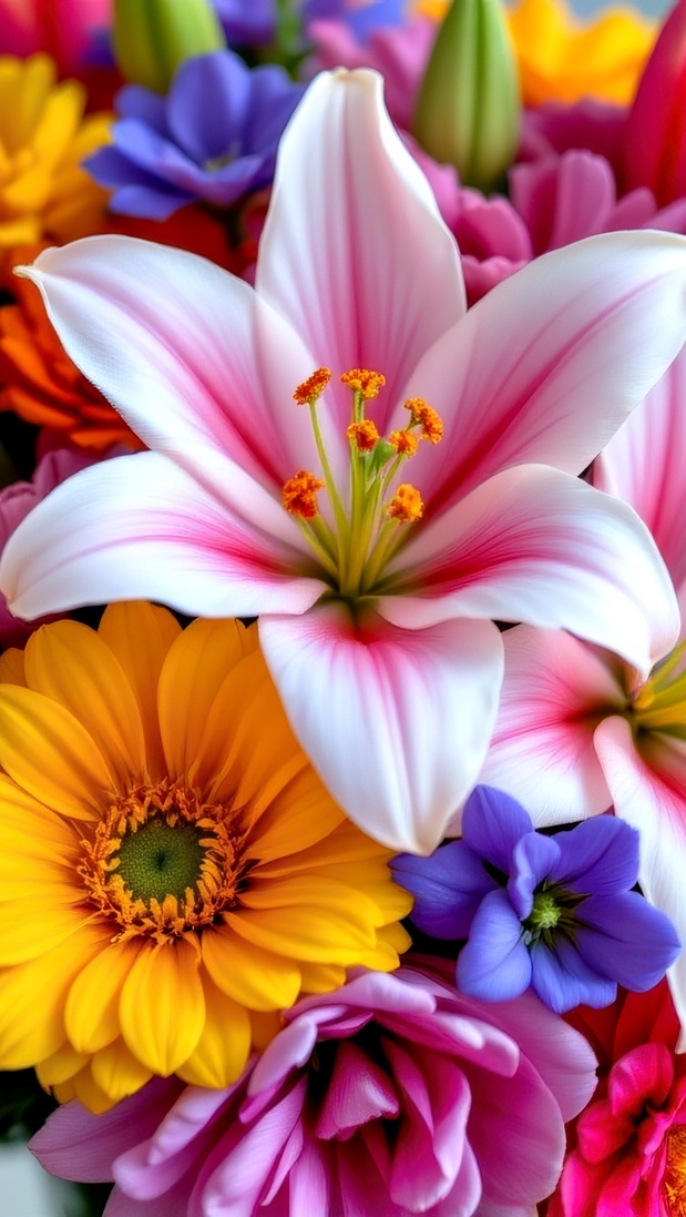 Edytor tapety: Rozkwitnięta lilia wśród kolorowych kwiatów