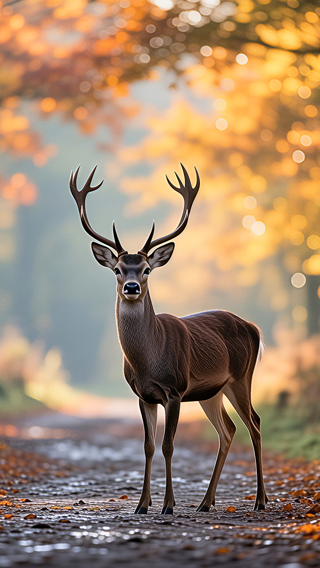 Edytor tapety: Jeleń stojący na leśnej ścieżce