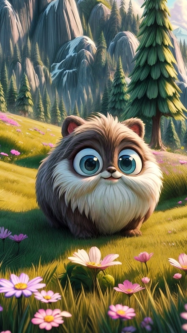 Edytor tapety: Stworek i kwiaty na polanie