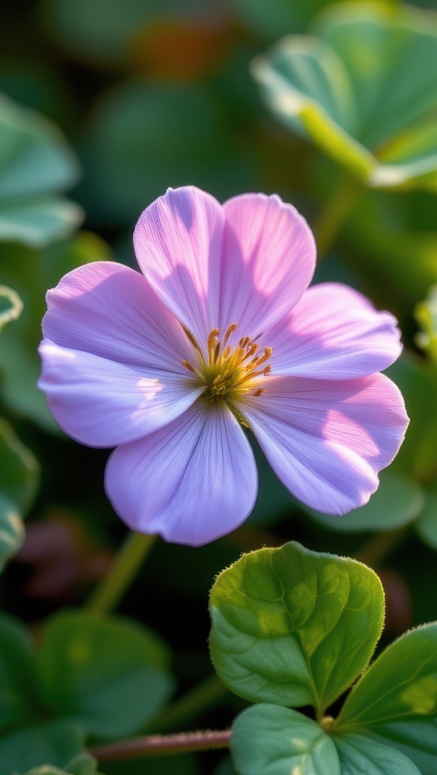 Edytor tapety: Rozświetlony fioletowy kwiat wśród liści