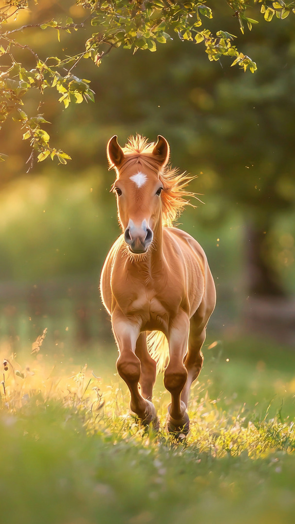 Edytor tapety: Koń galopujący po trawie