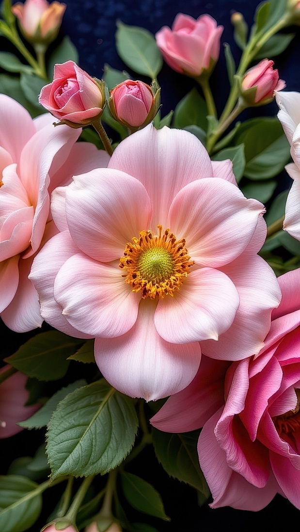Edytor tapety: Różowe kwiaty z pąkami w zbliżeniu