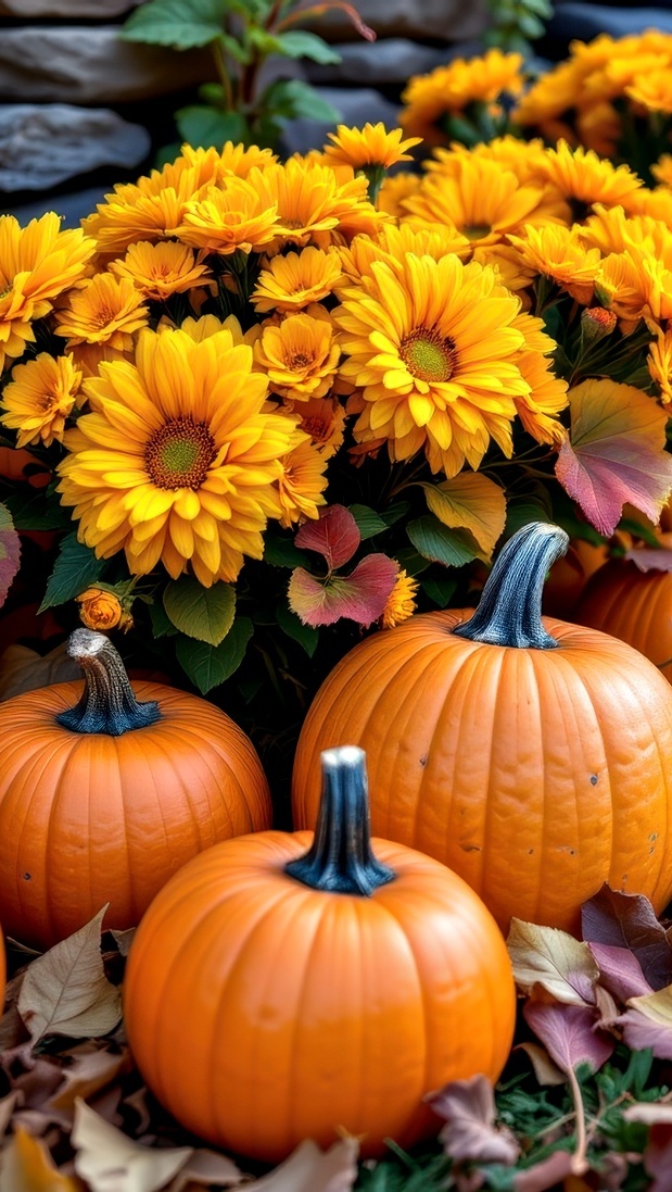 Edytor tapety: Trzy dynie przy żółtych chryzantemach