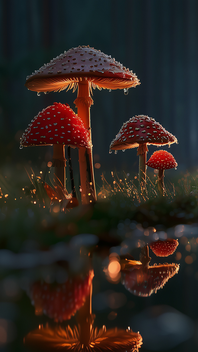 Edytor tapety: Czerwone muchomory odbite w wodzie
