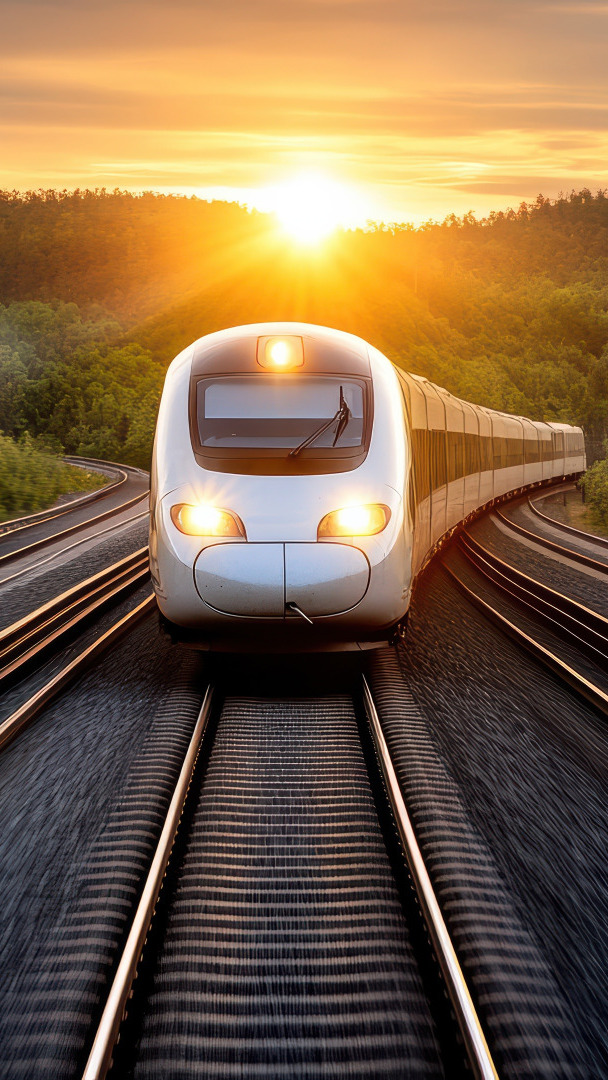 Edytor tapety: Pociąg na torach o zachodzie słońca