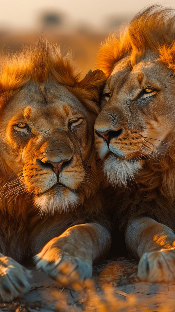 Edytor tapety: Dwa leżące na skale przytulone lwy