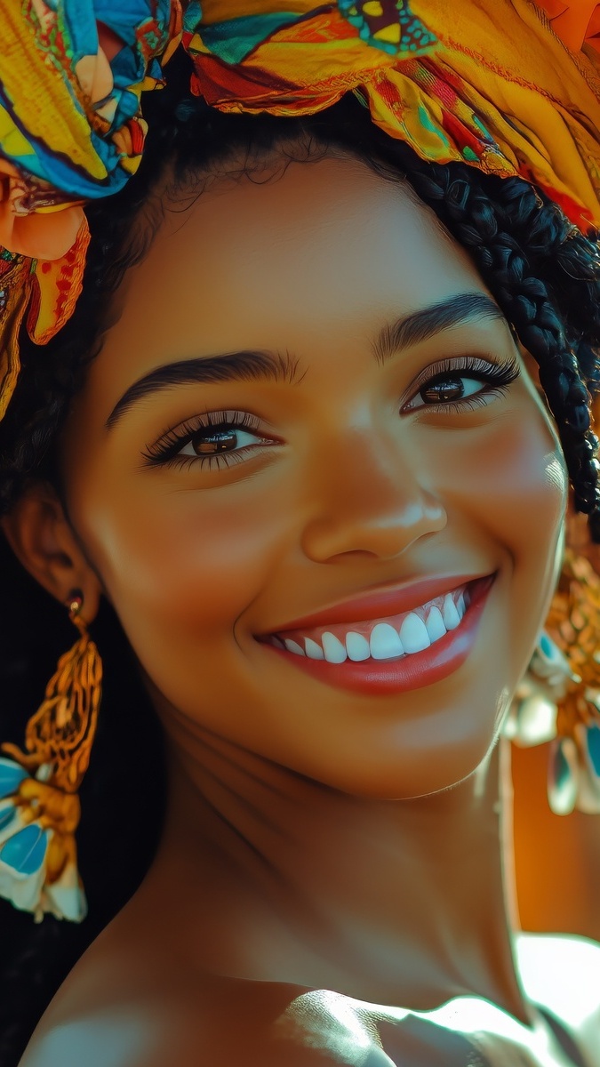 Edytor tapety: Uśmiechnięta kobieta w kolorowym turbanie
